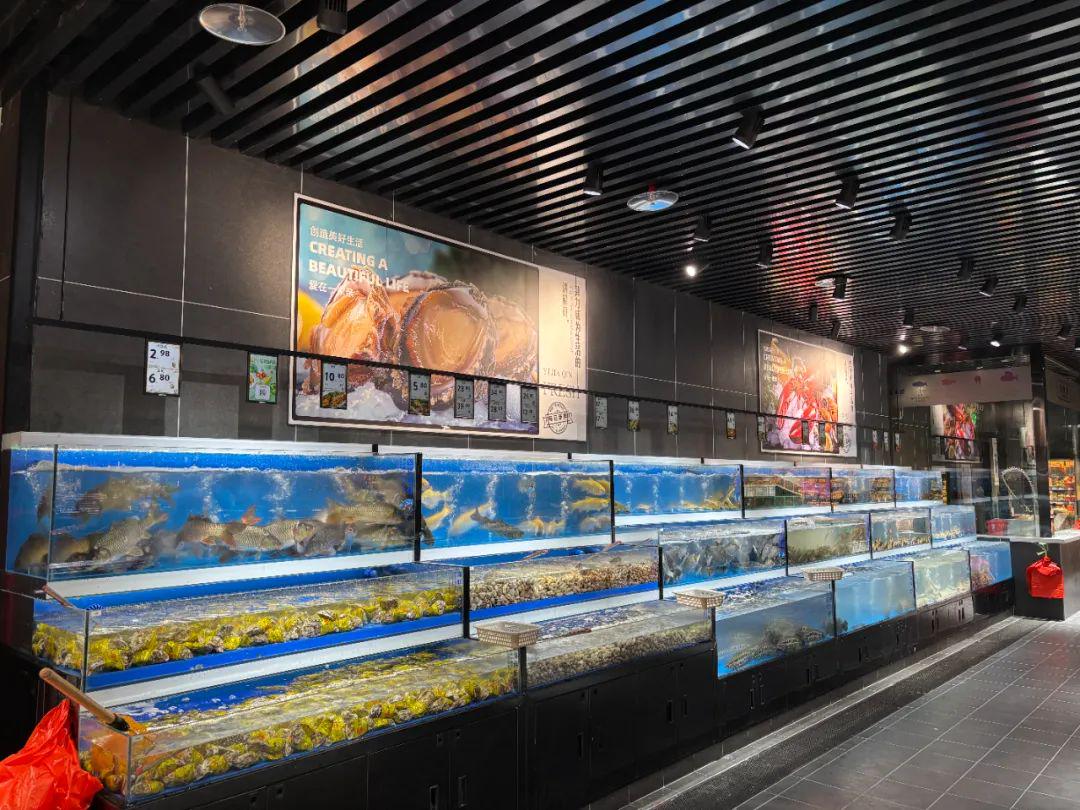 水产方面,由之前的联营转为了自营,经营面积扩大至原来的两倍,经营面积达到近200平,帝王蟹、波士顿龙虾、珍宝蟹、鲟鱼、三文鱼、鲈鱼、草鱼、鲫鱼等等,中高低档各类水产品一应俱全,满足消费者多样化的需求。