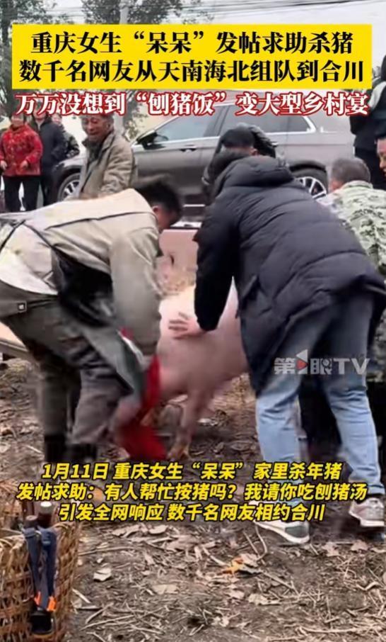 1月9日凌晨,呆呆发布了一条视频称:“1月11日我家要杀两头猪,有人来帮我按猪吗?请你吃刨猪汤!年迈的老父亲年龄大了,我怕他按不过猪。”她还在评论区发了自家地址。